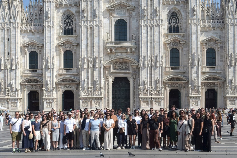 Vom 25. bis 27. September verbrachten wir drei spätsommerliche Tage in Mailand. Katia Accosato, Barbara Brollo und Carlo Berizzi von Guiding Architects Milano führten uns zu Bauten von Luigi Caccia Dominioni, Angelo Mangiarotti, Gio Ponti, Ignazio Gardella, Giuseppe Terragni u.v.a. Die Führungen mit viel Hintergrunderzählung eröffneten auch ein Verständnis für den städtebaulichen und kulturellen Kontext. Zu den besonderen Höhepunkten zählten die Besichtigungen einer Wohnung mit überraschender Raumentwicklung am Corso Italia von Caccia Dominioni sowie einer Wohnung in der ikonischen Wohnanlage Ca’ Brutta von Giovanni Muzio. Auch kulinarisch wurden wir verwöhnt: Dolkar überraschte uns wieder einmal mit einer sorgfältig kuratierten Auswahl an Restaurants und besonderen Locations. |