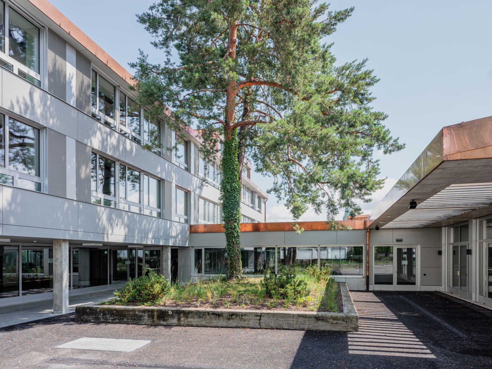 Die Strategie der Eingriffe und Massnahmen für die Gesamtinstandsetzung und Anpassung der Berufsschule Wetzikon an die neuen Nutzerbedürfnisse kann als ein Ausloten des «soviel-wie-nötig» und «sowenig-wie-möglich» beschrieben werden. Die Mutterbauten mit asymmetrischen Satteldächern der Architekten Hertig Hertig Schoch aus zwei Bauetappen von1961 und 1968 weisen eine Klarheit und schlichte Eleganz auf, welche mit späteren Erweiterungen verwässert wurden. Ziel der Instandsetzung war die Neuordnung der Gesamtanlage mit neu gewichteten und geklärten Eingängen, übersichtlicheren Wegführungen im Innern, eine neue Aula sowie einer zeitgemässen Mensa. Zusammen mit der Erneuerung der Gebäudehülle galt es, die Anlage aufzuwerten und wieder als einheitliches Gesamtensemble zu etablieren.